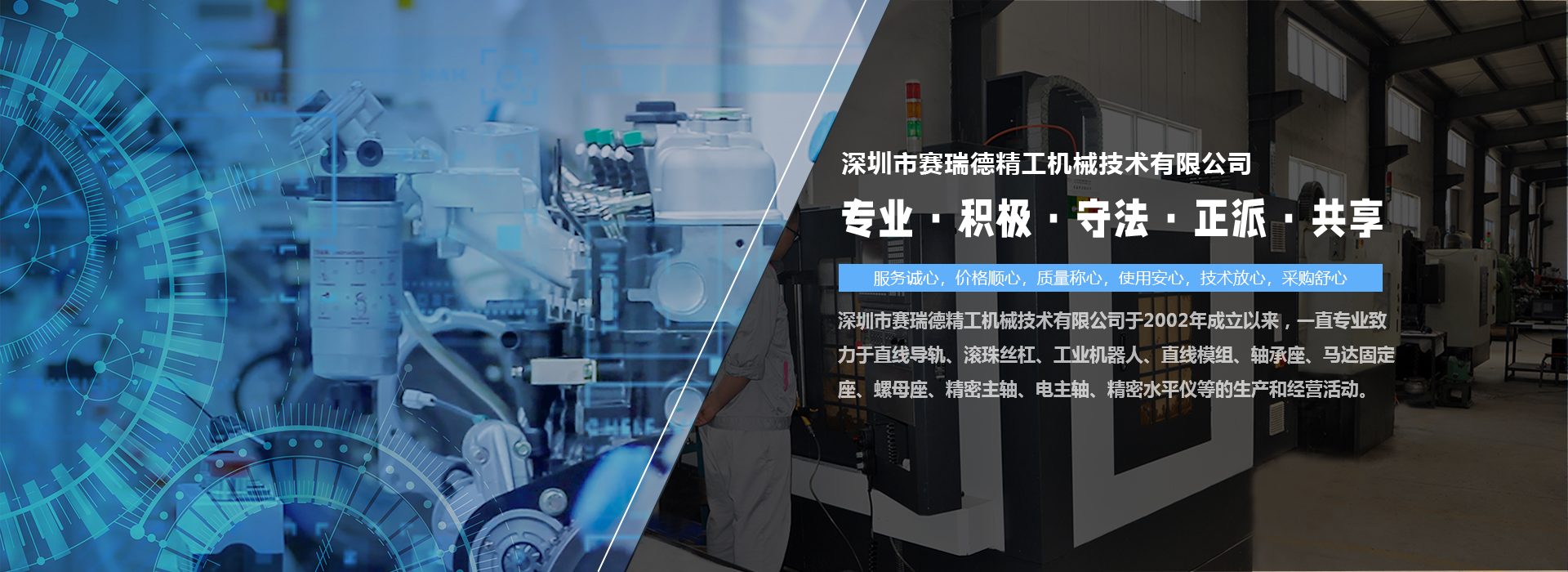 深圳市賽瑞德精工機械技術有限公司于2002年成立以來,一直專業(yè)致力于直線導軌、滾珠絲杠、工業(yè)機器人、直線模組、軸承座、馬達固定座、螺母座、精密主軸、電主軸、精密水平儀等的生產和經營活動。